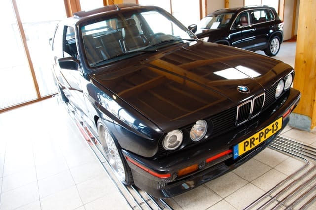 Soms komt Theo zo’n bijzondere auto tegen dat het moeilijk is hem weer te verkopen. Zo ook met de " target="_blank" rel="noreferrer noopener" aria-label="BMW M3 EVO I (opent in een nieuwe tab)">BMW M3 EVO I. Van deze wagen zijn maar 600 geproduceerd. De auto komt uit 1989, en ziet er prachtig uit door de kleur Diamantschwarz (antracietgrijs). Kenmerkend voor deze EVO uitvoering is de rode trim om de bumpers, een alcantara stuur en meer kracht; de auto heeft 220PK. De auto staat te koop, maar de trotse eigenaar vindt het helemaal niet erg als de auto in de showroom blijft; niet alleen is de bijzondere auto een kunstobject voor liefhebbers, de auto wordt elk jaar meer geld waard.