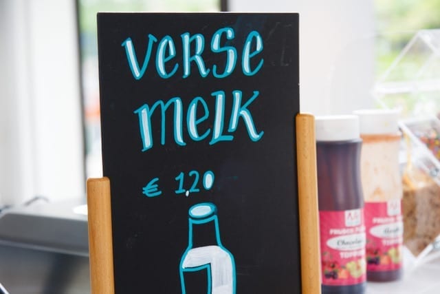 De tijden dat de melkboer ’s ochtends je liter verse melk bracht is al even voorbij. De laatste jaren wordt de vraag voor ‘echte’ melk toch steeds groter. Bij de salon op de Harlingersingel kun je daarom naast vijftig soorten schepijs en milkshakes ook een fles verse melk halen. De trotse eigenaren van Margje 24 zijn hier blij om. Want hun reden voor het openen van de salon is om niet alleen bezoekers te trakteren op een lekker ijsje, maar om ook om bewustzijn te creëren rondom het neerzetten van een goed en lekker product. In de salon geven ze via de informatiepanelen, een filmpje over de boerderij en zelfs een webcam uitleg gegeven over het hele productieproces.