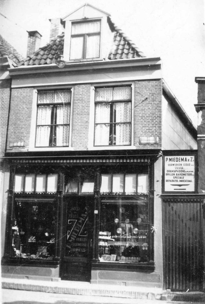 In 1900 startte Pieke Miedema (1880-1946) een winkel en reparatiewerkplaats voor klokken, horloges, goud-en-zilver, brillen en grammofoonplaten. Het bedrijf vestigde zich aan het Heer Ivostraatje in een inmiddels gesloopt pand waar nu de groenstrook aan het Oldehoofsterkerkhof loopt.