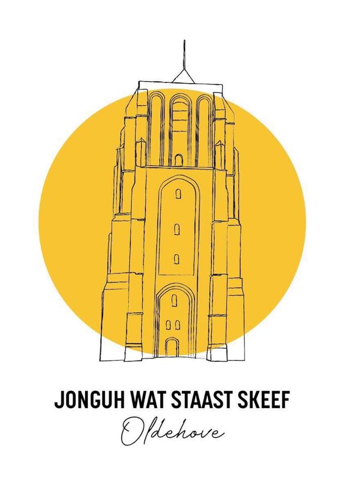 Na de Oldehove autostickers komt lifestylewinkel Studio 8 met exclusieve tuinposters met de scheve toren erop. Naast de toren pronkt er ook geestige tekst op: 'Jonguh, wat staast skeef'. Vorige maand kon je al één van de exclusieve vinylposters bestellen; die gingen als zoete broodjes over de toonbank. Die voorraad is inmiddels verkocht, gelukkig is de voorraad nu aangevuld. Eventueel kun je ook één via de Facebookpagina van Studio 8 winnen. Grijp je kans, zolang ze er nog zijn. Zo’n icoon wil je gewoon in je tuin toch?