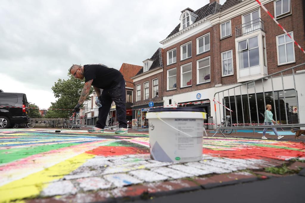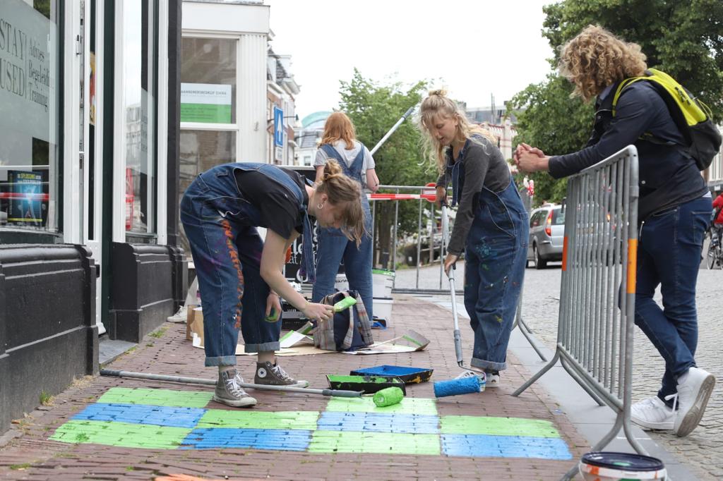 Het project 'Kleur in de stad' is inmiddels in volle gang. Tijdens dit project worden de stoepen van Voorstreek, Kelders en Groentemarkt tot aan de hoek van de Peperstraat, samen met de trappen van het Hoeksterend, veranderd in een kleurrijk kunstwerk.