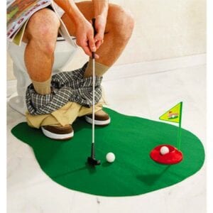 73% van de Nederlanders gebruikt zijn of haar smartphone op het toilet. Je kan je wel voorstellen dat er lichte paniek ontstaat wanneer de smartphone aan de oplader ligt. Gelukkig is er ook nog offline vermaak voor op het toilet. De Potty Putter is een golfspel voor op het toilet, inclusief golfclub, hole en matje.