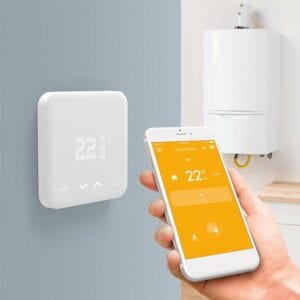 De slimme thermostaat van Tado zorgt ervoor dat je nooit meer in een koud huis thuiskomt. De thermostaat merkt wanneer je op weg naar huis bent en zet je verwarming al zachtjes aan. Daarnaast merkt hij wanneer je naar bed gaat en zal dan de temperatuur verlagen.