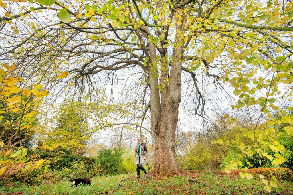 Bij de brand van het vorige huis liep een grote lindeboom flinke schade op. Aan de kant van de brand eindigen de takken van de boom abrupt in uitstulpingen van kleinere, jongere takken. Aan de andere kant van de boom, die geen last heeft gehad van de brand, groeien de takken in vloeiende lange lijnen. Ook een hulstboom, die voor het oude huis stond, is nog steeds op het middenterrein aanwezig.