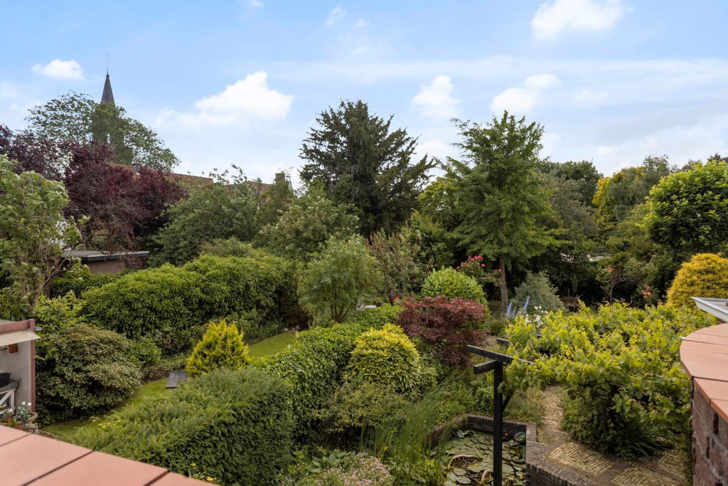 Via de bijkeuken kom je in de garage. Leuk detail: er is een aparte toiletruimte in de garage. Die is vroeger speciaal voor de tuinman aangelegd. De tuin is overigens maar liefst 28 meter diep en beschikt onder andere over een vijver, diverse terrassen en veel privacy.