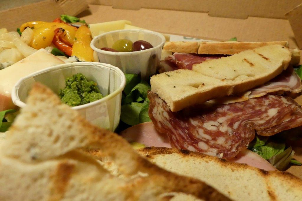 Vanavond gaan we Italiaans genieten. Voor het gezelschap hebben we een driegangenmenu. De Italiaanse geuren komen ons al tegemoet. Alles keurig verpakt in nette bakjes of de herkenbare en veelbelovende pizza-dozen.