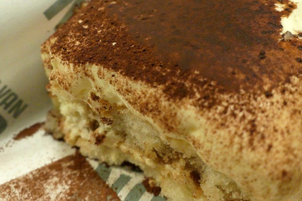 Mooie lichte, royale en romige tiramisu. Lichte, bijna slagroomachtige, mascarpone, afgewisseld met een lichte likeursmaak en hint van koffie. Love the classics. Ambachtelijk gemaakt en een royale portie. Een klassieke tiramisu om de avond mee af te sluiten.