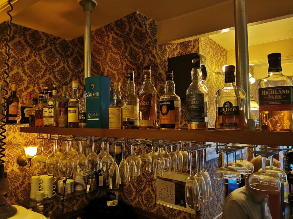 “We zijn hier grote wijn- en whiskyliefhebbers. We hebben 35 wijnen, allemaal per glas. Mijn liefde voor whisky is ontstaan toen ik in Schotland werkte. We organiseerden ook regelmatig proefavonden. Nu dat niet meer kan, hebben we wel een Schotse whiskyproeverij voor thuis.”
