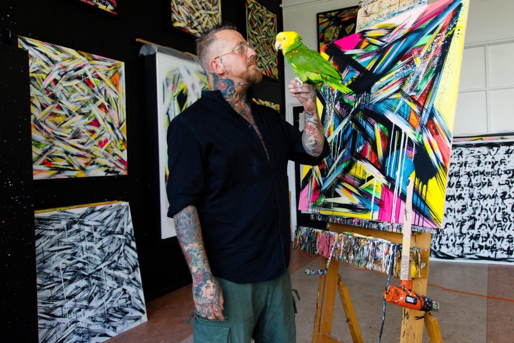 ‘Ik kwam mijn diensttijd uit en ik moest wat. Toen ben ik in een kledingzaak van een vriend gaan werken. Daarnaast ben ik achttien jaar portier geweest. Maar dit was beide niet mijn roeping en ben ik omgeschoold naar technisch lasser. Zeven jaar geleden ben ik geknapt. In korte tijd verloor ik mijn vader en achttien vrienden en vriendinnen. Ik was zo verdrietig. Toen ben ik een tijdje naar Ibiza vertrokken en ben ik gaan schilderen.’Hoe verliep die carrièreswitch?