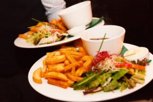 De Franse en de Italiaanse keuken kom je veelvuldig in Leeuwarden tegen, maar de Nederlandse keuken niet. Voor het diner kun je rekene28n op een heerlijke runderstoofpot of bavette met rode wijnsaus. Recent is het oerhammetje aan het menu toegevoegd, een mooi stukje vlees dat je zo van het bot eet. Ook aan de visliefhebbers is gedacht met victoriabaars of sliptong. Alle hoofdgerechten worden geserveerd met een aardappel garnituur, warme groenten en een frisse salade. Je eet er voor een schappelijke prijs: weekelijks wisselende Clubhap van 9,95 of het 3-gangen weekmenu van 19,95. Ook de lunch is goed besteed aan de Friesche Club. De robuuste plakken landbrood zijn rijkelijk belegd met bijvoorbeeld Carpaccio, Kip à la de Friesche Club of geitenkaas. Je kunt ook voor een 12 uurtje van 9,95 gaan: mosterdsoep, kroket (van Kroketterij de Bourgondier) met mosterdmayonaise, gebakken ei en een frisse salade.