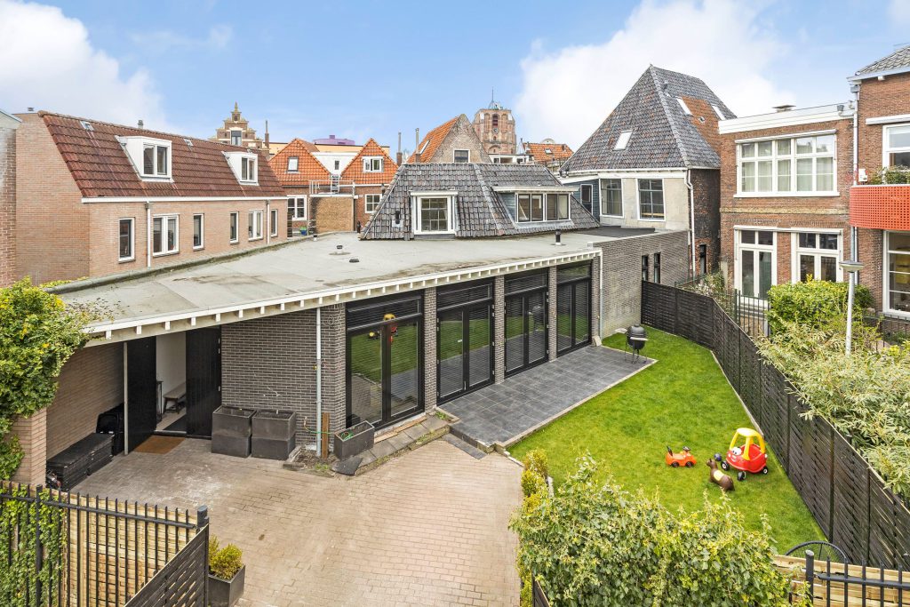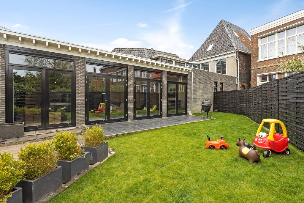 Dan nog even over de tuin: die vind je (besloten) achter het huis, op het zonnige zuiden. Je hebt een terras, gazon en een eigen parkeergelegenheid voor twee auto's. Met de auto is de tuin en het achter de woning gelegen terrein via de Bagijnestraat te bereiken.