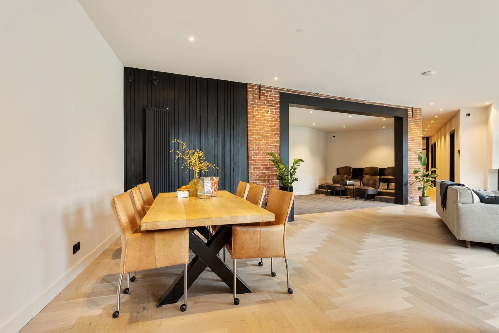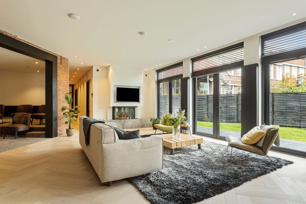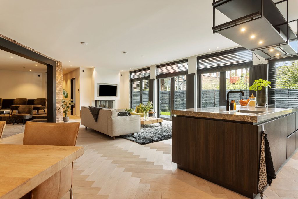 De woonkamer heeft een haardpartij en meerdere tuindeuren naar de tuin. Op het kook- en spoeleiland kun je overigens prima koken: er is onder andere een stoomoven, combi-oven, wijnkoeler, koelkast, vriezer en vaatwasser aanwezig.
