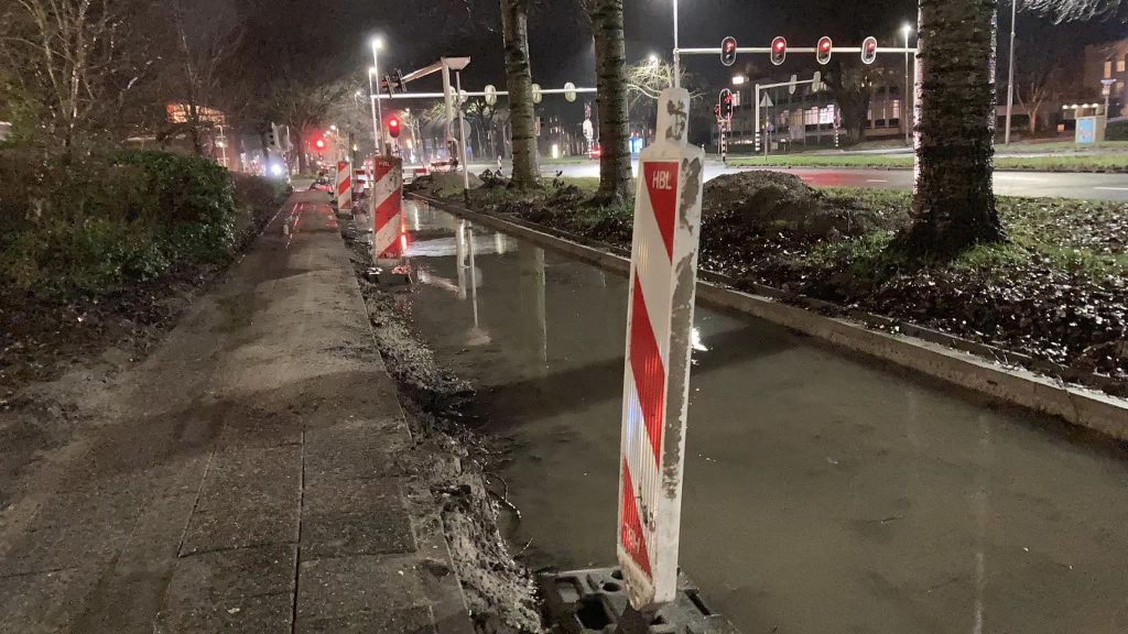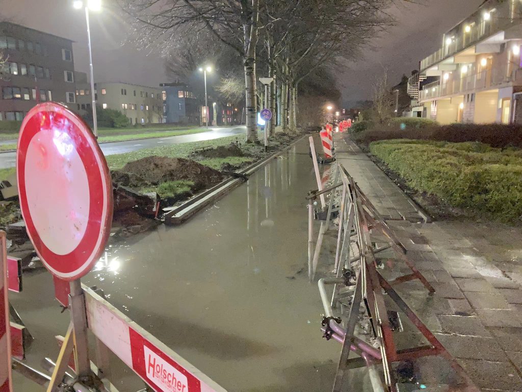 De onderstaande foto's zijn genomen in Huizum. Het is géén nieuwe sloepenroute naar de Schrans: de wateroverlast heeft een verdrietigere reden. De aannemer die deze klus zou klaren is namelijk jammer genoeg failliet gegaan... En er is nog geen andere aannemer die het heeft opgepakt. Zonde.