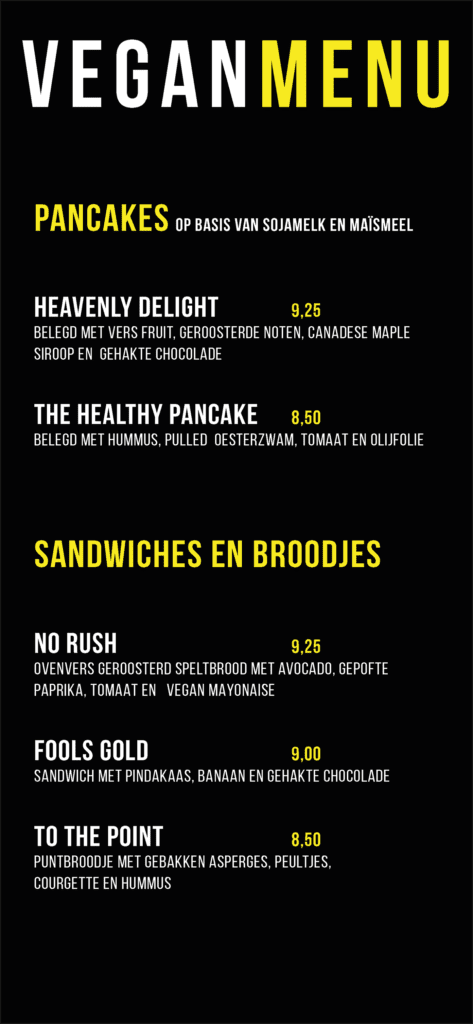 Goed nieuws dus voor groenteliefhebbers, vegans en mensen die vegetarisch eten dus. Het veganmenu is voor zowel de lunch als het diner en je hebt de keuze uit verschillende broodjes, pannenkoeken, salades en burgers. Ook dit past natuurlijk bij de Laze Lemon Experience waar we eerder over schreven.