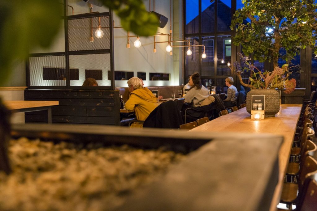 Vanavond schuif ik samen met hoofdredacteur Dennis van Welkom in Leeuwarden aan bij het 180 zitplaatsen tellende Roast aan de Nieuwestad 63. Ik ben verzot op de unieke smaak en geur die het bereiden op kolen aan eten geeft, dus waar anders dan te beginnen bij dit échte grillrestaurant. Bij binnenkomst valt het bijzondere interieur direct op. Niets doet meer denken aan de gelegenheid die er hiervoor gevestigd was en waar mijn ouders in de jaren ‘70 menige nacht dansend doorbrachten; de toen immens populaire discotheek Vat ‘69. Dat ik geen onbekende ben van het restaurant merkt ook de gastheer op; je bent hier vaker geweest, dus de kaart hoef ik jou niet meer toe te lichten. Attent en oplettend. Ik hou ervan, mijn ego ook. En inderdaad, de kaart is mij duidelijk. Je kunt kiezen uit de traditionele voor-, hoofden nagerechten. De twist zit hem in de bijgerechten die je desgewenst en naar keuze kunt bestellen.