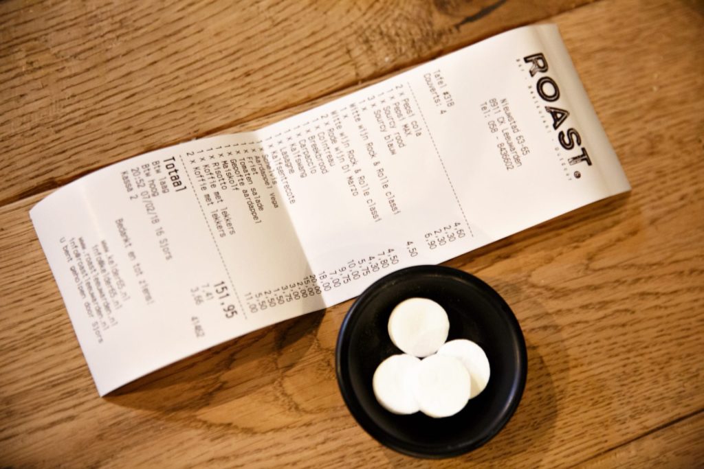 Na onszelf tegoed te hebben gedaan aan de hoofdgerechten en meer dan vullende bijgerechten ben ik blij bij het zien van koffie met lekkers op de dessertkaart. Ik ben toch al geen toetjesmens en ruimte is er ook niet meer voor. Bij het drinken van onze koffie met lekkernijen, die ook weer huisbereid zijn, concluderen Dennis en ik dat dit niet de eerste keer was, maar dat het ook zeker niet de laatste keer zal zijn dat wij Roast bezoeken. En als we richting uitgang lopen en ik een blik werp in de grote open keuken in het midden van het restaurant, neem ik me voor om alvast een nieuwe datum te prikken. En ik kan iedereen aanraden hetzelfde te doen.