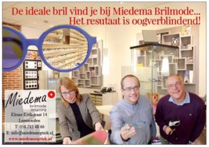 Als blijkt dat een bril het beste voor je is, dan adviseren ze bij Miedema het Live Time Eye Care programma. Je krijgt dan eens per twee jaar een oproep voor een oogmeting. Dus als je verder kijkt dan je neus lang is en het beste voor je ogen wilt, ga dan naar een specialist zoals Rob Dijkstra van Miedema Optiek. Want een mooie bril is belangrijk, maar de beste zorg voor je ogen staat in hun optiek nog altijd voorop!