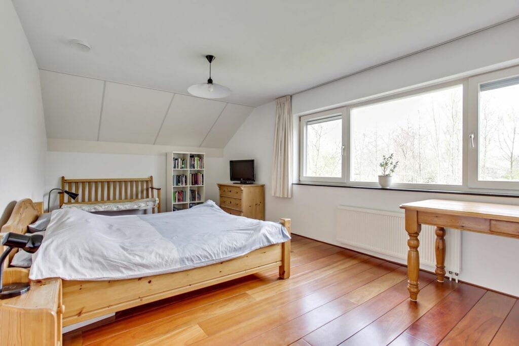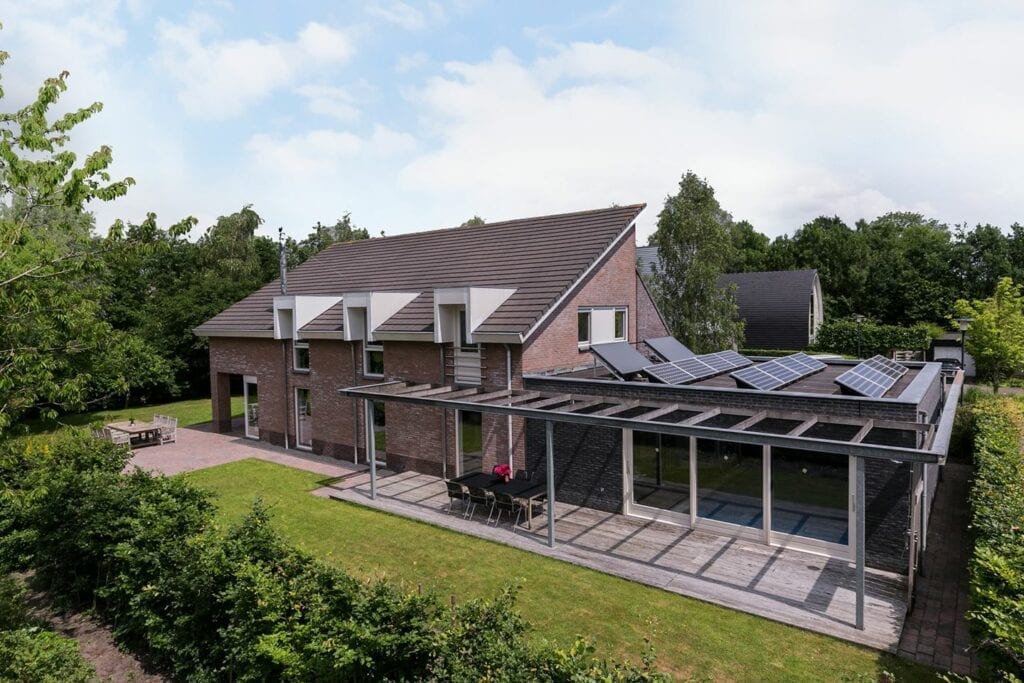 Niet alleen binnen, maar ook om het huis is zat ruimte. Met mooi weer zit je heerlijk buiten en loop je gemakkelijk in en uit naar het zwembad. Bovendien kunnen je kinderen of je huisdieren heerlijk vrijuit rondrennen in de tuin. Verder bevindt de woning zich op de grens van de Dokkumer Ee en het Leeuwarder Bos. Deze villa staat helemaal in het teken van rust, ruimte, groen en water.