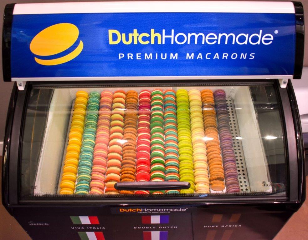 De macarons van Leonidas zijn afkomstig van DutchHomemade, een bedrijf uit het zuiden van het land. Voor bijzondere smaken als Red Velvet, Dutch Cookies & Cream, Tiramisu, Black Cherry Pie, Frozen Yoghurt en Italian Cookie betaal je dan wat meer (tussen de €2,00 en €2,50), maar je krijgt er wel iets bijzonders qua kleuren en smaak voor terug.