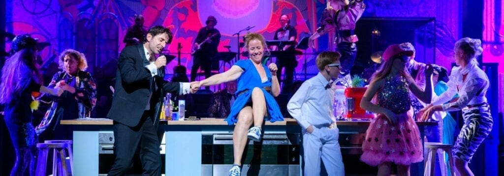 De keuken van Soof is het decor in de voorstelling. Sterker nog: het is een volledig functionerende keuken waarbij het publiek in de keuken zit en kan genieten van Soof’s kookkun- sten. Ook op het toneel moet Maike veel bordjes in de lucht houden. “Dat is wel heel spannend. Ik ben het gewend te spelen, te dansen en te zingen maar nu moet ik ook nog koken waarbij het wel de bedoeling is dat het allemaal precies bin- nen de tijd gebeurt. De keuken draait rond, zodat iedereen kan zien wat er gebeurt en niemand tegen de achterkant zit aan te kijken. En de bezoekers krijgen hapjes. Niet gemaakt door mij, eerlijk gezegd, want dat is niet te doen. Maar het maakt wel de sfeer van de voorstelling: gezellig, chaotisch, warm en verrukkelijk!”