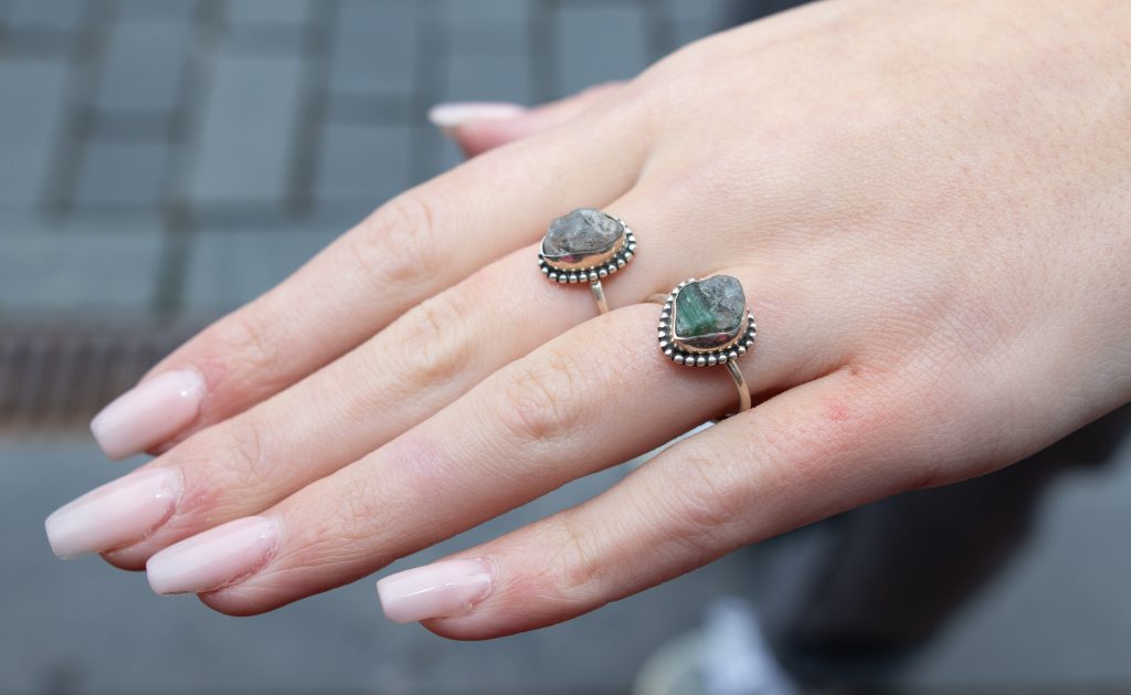 Deze zilveren ringen, verrijkt met ruwe edelsteentjes, zijn rechtstreeks afkomstig uit India. De onbehandelde, natuurlijk gevonden stenen zijn perfect voor liefhebbers van een subtiele en natuurlijke look. Elk stuk in deze collectie is uniek, wat zorgt voor een zeldzame ring. Prijs: €19,95