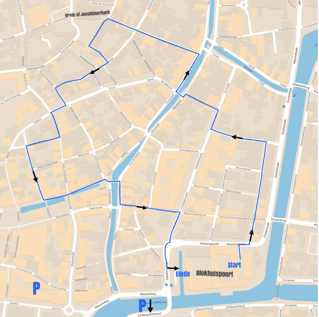 Hierboven vind je de route! En wij geven één tip: volg het blauwe lantaarnlicht...