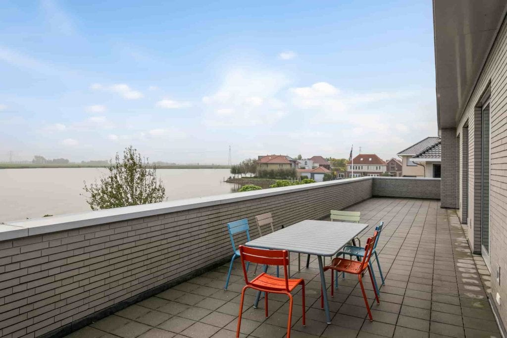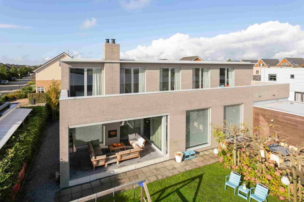 Vanuit binnen kun je zo doorstappen naar buiten. Of je nu zin hebt om te zonnen op het dakterras of in de achtertuin, het kan allemaal. De inpandige veranda maakt het door een houthaard aan de buitenzijde, winters ook comfortabel om naar buiten te gaan. Zo kun je het hele jaar door van de buitenlucht genieten, en dat zeer dicht bij huis.