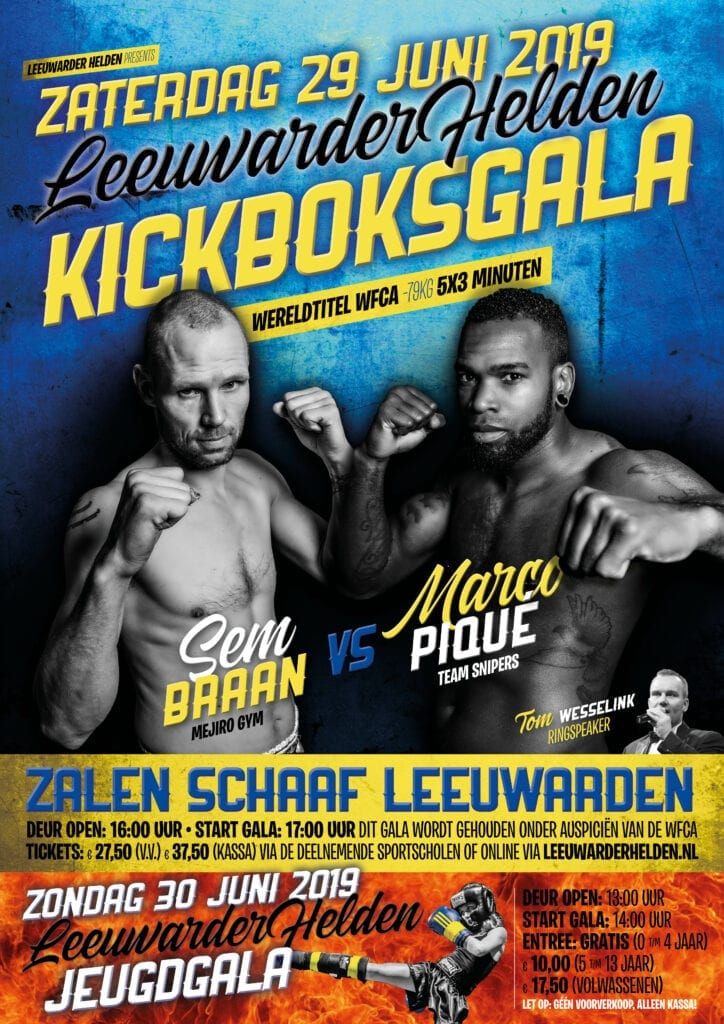 De hoofdpartij van dit jaar is Sem Braan vs Marco Piqué. Sem Semtex Braan kennen we van It’s Showtime. Hij won in 2011 zijn eerste W.A.K.O. Pro wereldtitel. Hij komt uit Amsterdam, en vecht voor Mejiro Gym. Marco Sniper Piqué is geboren in Suriname en vecht nu voor Team Snipers in Den Haag. Hij heeft tegen Nieky Holzken en Murthel Groenhart gevochten en werd in 2009 W.F.C.A. Muay Thai wereld kampioen. Deze beiden gerespecteerde namen uit de vechtsport hebben hun sporen meer dan verdiend. Ze vechten nu voor de WFCA Veteranen Wereldtitel volgens K-1 regels en staan vijf keer drie minuten in de ring.