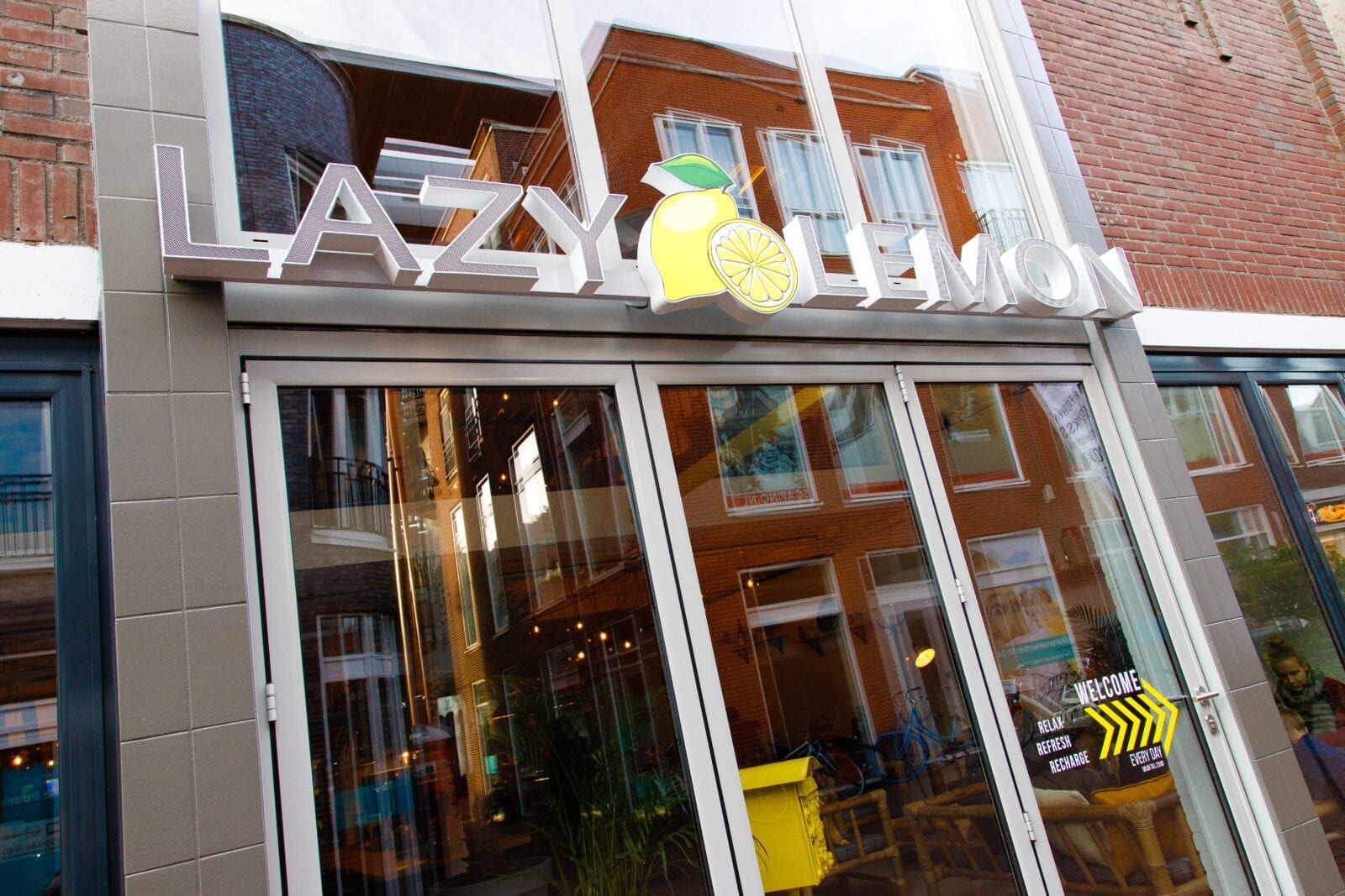 Al met al is Lazy Lemon een hip en relaxt restaurant waar je rustig kunt studeren en werken onder het genot van een bak koffie en vers gebak. Tussen het shoppen door of in je lunchpauze scoor je er bovendien een toplunch, en ’s avonds geniet je er van een gezond diner en een goede cocktail. Ongedwongen genieten, dat is het devies, dat is de Lazy Lemon experience.